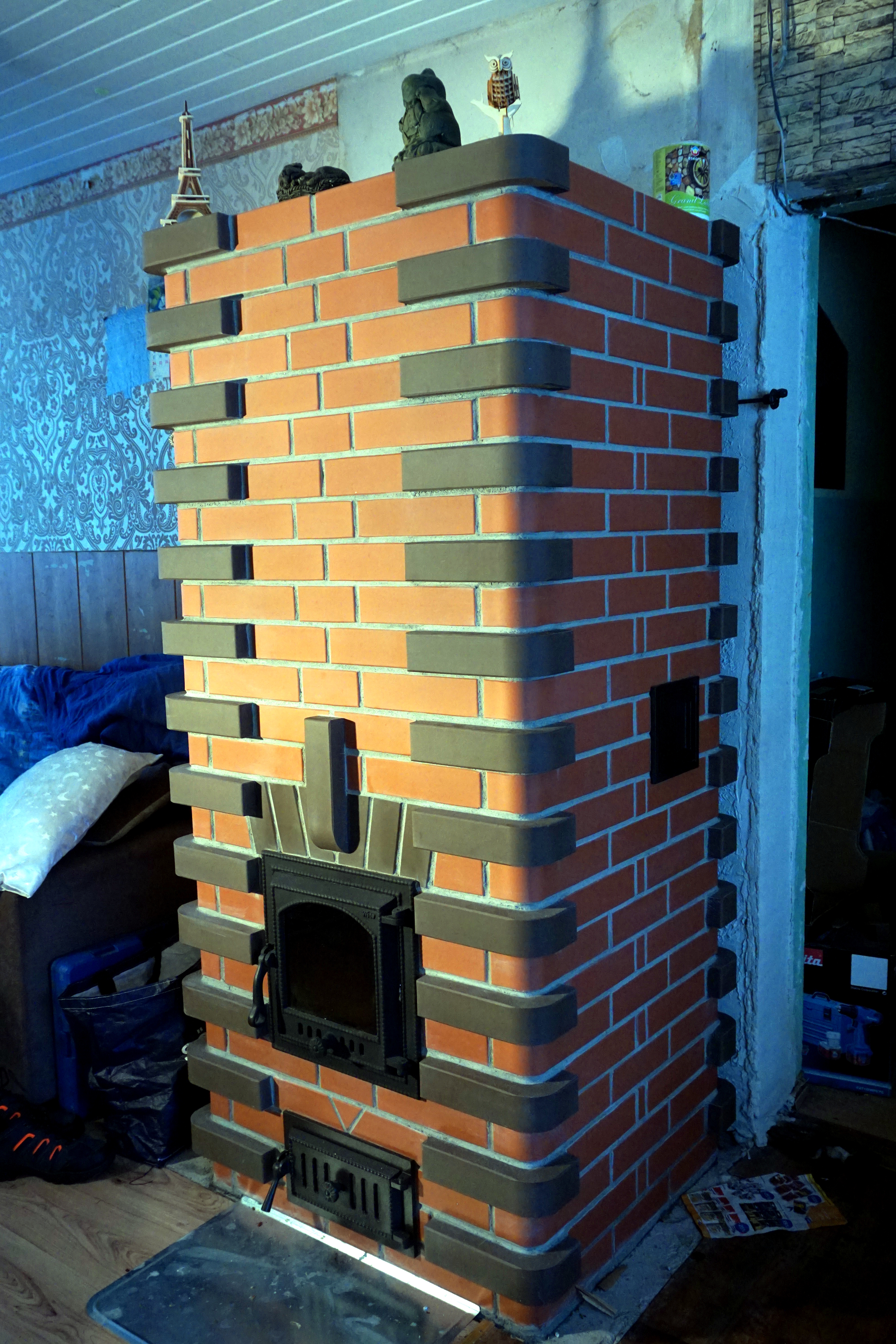 Vana ahi oli reaalselt väsinud. Vana glasuurpott oli mõrasid täis, ahju kolde osa oli „surnud“. Soojasalvestusvõimet sellel kolde osal enam ei olnud. Vana ahi sai lammutatud ja asemele tehtud parajalt suur tellisahi, mis on nelja lõõriga (kaks tõusvat, kaks langevat). Soome tüüpi kolle, külgedel umblõõrid. Kortstna lõõr on 14×14 cm. Ahju lõõride pikkus on 3.6 meetrit. Maksimaalne puudekogus ühe kütmiskorra kohta on 12 kg.