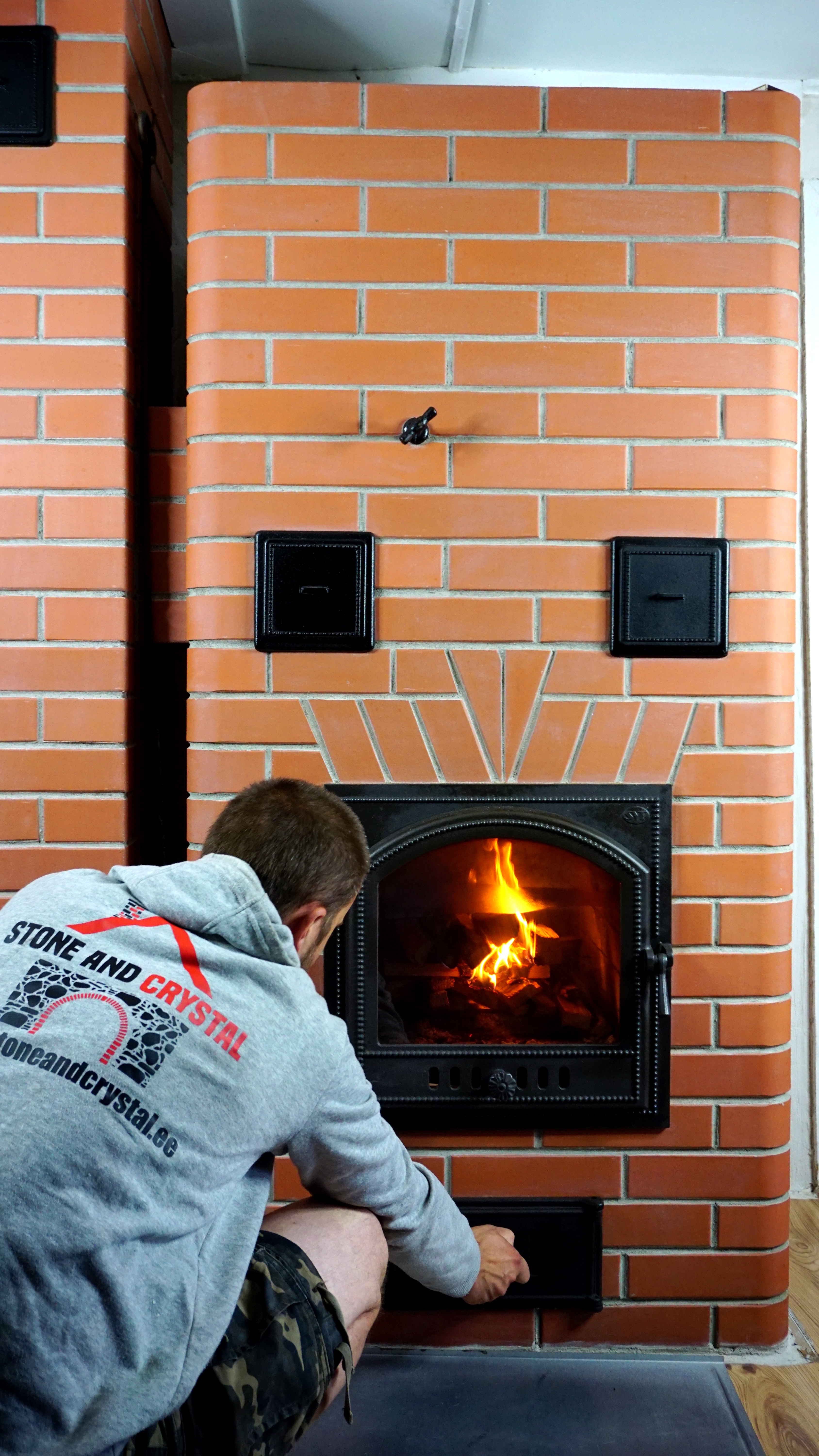 Korstna pits on lahendatud lihtsas talu stiilis, tagamaks ühtse stiili maja vanuse ja talu kultuuriga. Ahju välisviimistlus Lode Janka, nurgad kumerad F15/R60