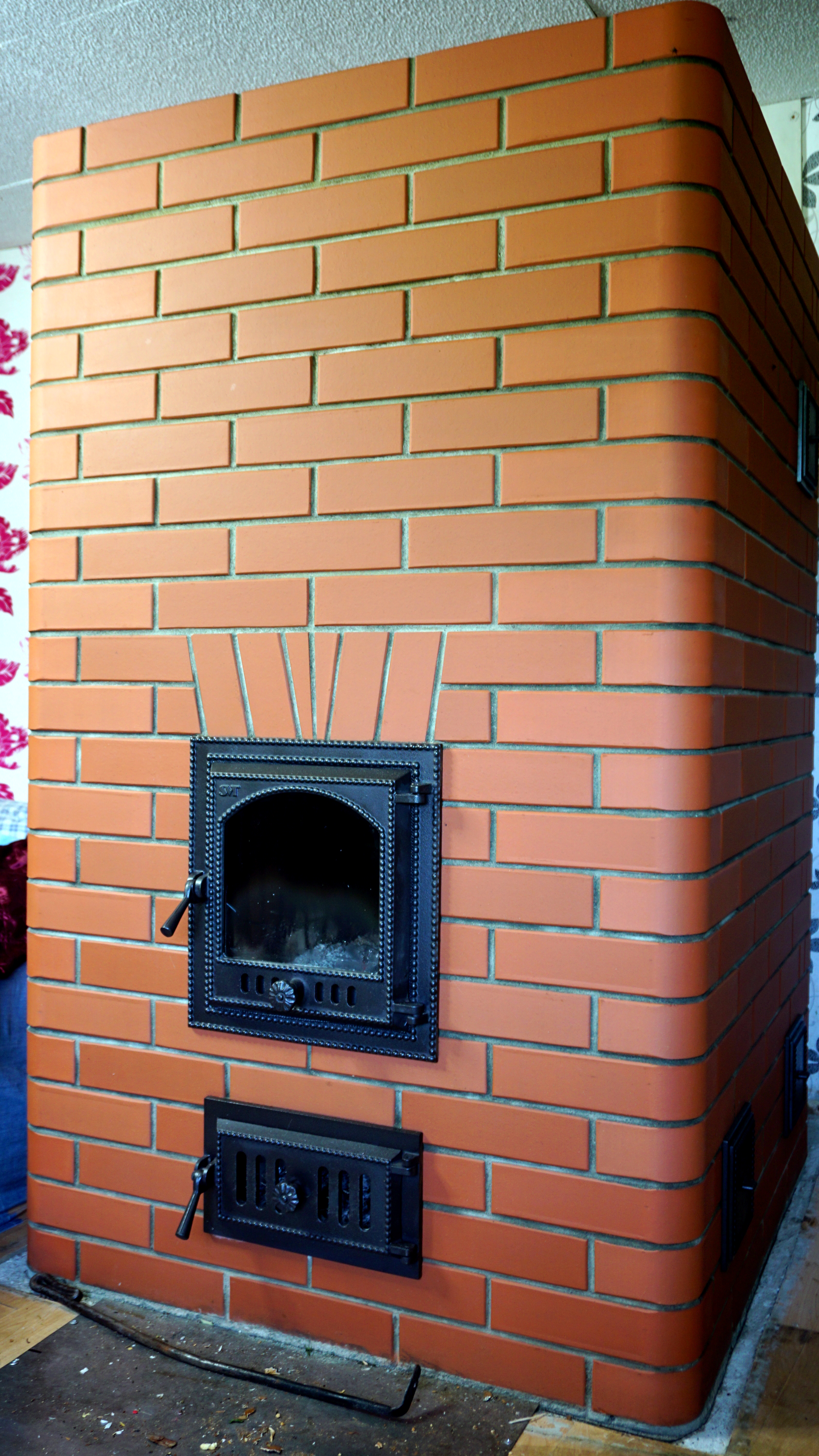 Väike, aga asjalik. Soome tüüpi kamin/ahi. Kahe siibriga. Ülemine siiber töötab käivitussiibrina (soojendab korstent) ja alumine siiber on talvine siiber, mis juhib suitsugaasid korstnasse ahju põhja pealt. Antud ahi on kahe langeva lõõriga, mis tagab ühtlase soojenemise. Koldepeegel on massiivne šhamott “tükk”, mis töötab akumulaatorina ja aitab salvestada rohkem sooja. Ahi seest on teostatud täielikult šhamottvoodriga, mis annab ahjule pika ja kestva eluea. Ahju täismass ca 2700 kg.