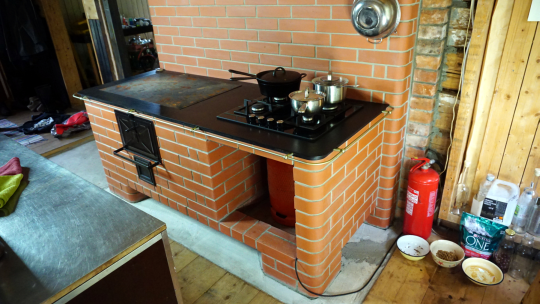 Tegemist on eri mõõdus pliidiga, mille ühes otsas on puupliit ja teises otsas – gaasipliit. Pliidi all on kolmes küljes varbaeendid tagamaks võimalikult mugava askeldamise pliidi ümber. Antud pliit on piisavalt suur, et mahutab toimetama koguni kaks inimest üheaegselt. Lõõrid: kaks tõusvat, kolm laskuvat talvisel osal. Kogu mass antud tööl on ca 3000 kg. Mõnusalt soe köögi süda.