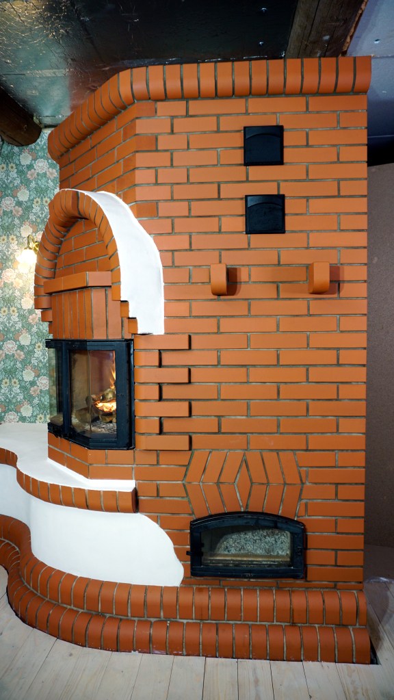 Küttesüsteemi kogumass (korsten ja ahi) ca 15 260 kg. Ahi on varustatud kolme siibriga kus kaks on talvised siibrid ja üks suvine ehk käivitussiiber mis soojendab üles korstna.Ahjul on kaks leso. Esimene mis on ahju esiküljel on perenaise kudumisnurk ja teine leso asetseb väikeses toas. Mõlemad lesod on teostatud karniisidega, mis rõhutab just leso laiust ja kuju. Ahju ja korstna pindala on ca 6 ruutmeetrit ja ahju kõrgus 250 cm. Ahju dušširuumi poolses küljes asub soekapp. Soekapi pikkus 100cm ja sügavus 35cm. Kõrgus 29 cm Soekapil on samuti ehitatud väljaulatuv osa mis aitab seda rõhutada ja pealtpoolt ka laiendada. Soekapi all on kaks tellist millel on sees avad. Sinna paigaldatakse metallist kardinapuu kus saab hiljem miskit kuivama riputada kui ahi on piisavalt jahtunud. Dušširuumi põranda kohal on kolm kanalit kuhu on klient mõelnud paigaldada veesärgi, tarbevee kütmiseks. Kambrid on ehitatud nii et torud ei puutuks kokku suitsuga, nii ei jahtu suitugaasid maha ja lõõrsiutikku jõuab piisavalt kuumad suitsugaasid.. Torud on igal ajal vaadeldavad ja vahetavad vastavalt vajadusele. Kambrite kohale on paigaldatud koldelae isolaatorplaat mis kuumust allapoole tagasi peegeldab, nii jõuavad kuumemad gaasid lõõride kaugemasse ossa. Kambrid lähevad kuumaks ja hoiavad seda pika aja vältel tänu neid ümbritsevale massile. Ahi on teostatud kahe küttekoldega. Alumine väike kolle on lahendatud võlviga. Selles teeb pererahvas süüa ja väga häid pitsasid. Pitsa valmib 6 minutiga. Suur kolle kütab ahju ülemist osa ja suuremat ahju massi. Ahju kõik kolm lõõrisüsteemi on ehitatud nii, et need ei sega üksteist ja on kasutatavad täiesti eraldi Pehmematel talveilmadel kui väljas on miinus kümme kraadi köetakse hommikul alumist kollet ja õhtupoole suurt kollet. Mõlemat korraga küttes pidi tuba liiga palavaks minema.