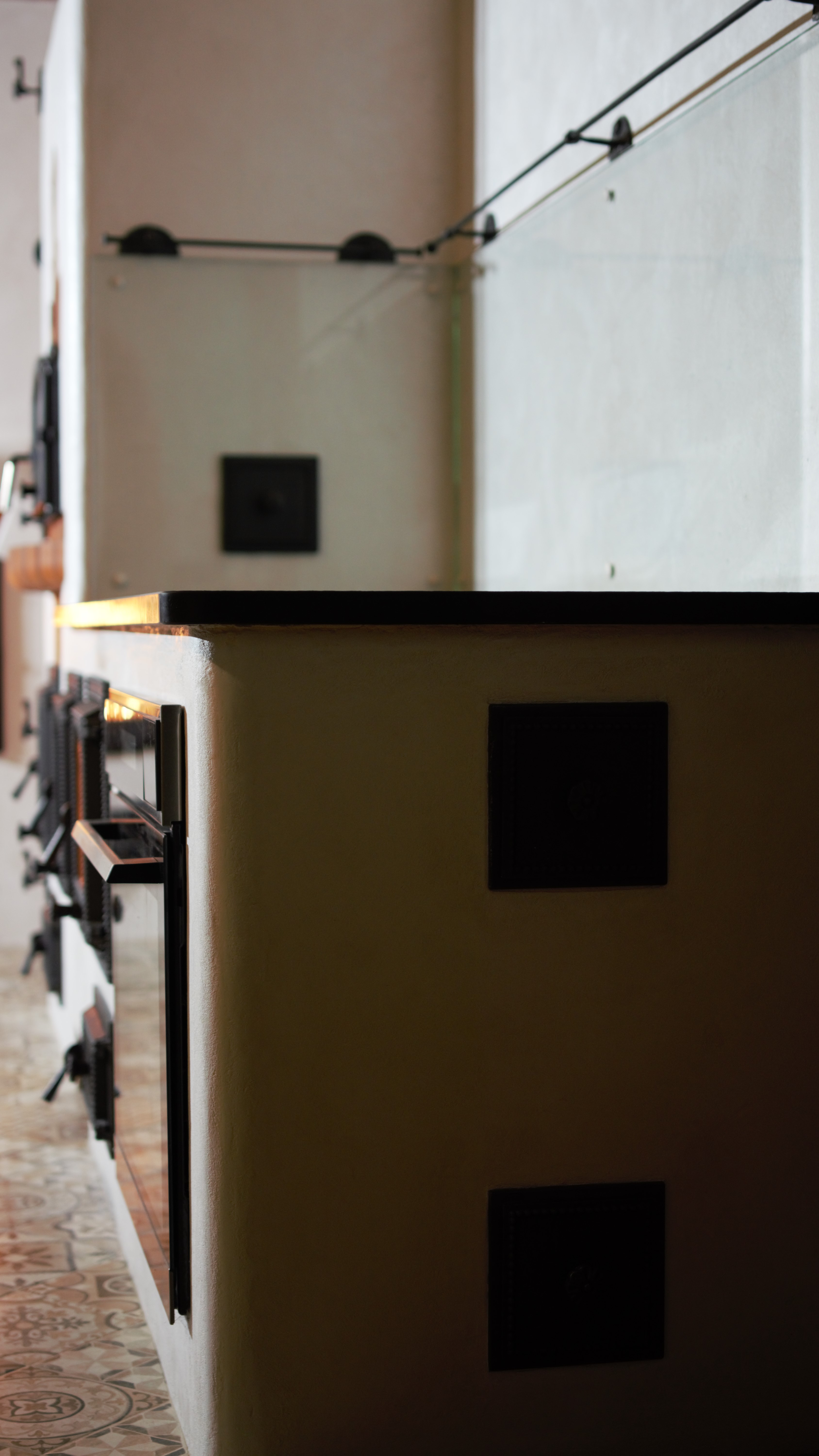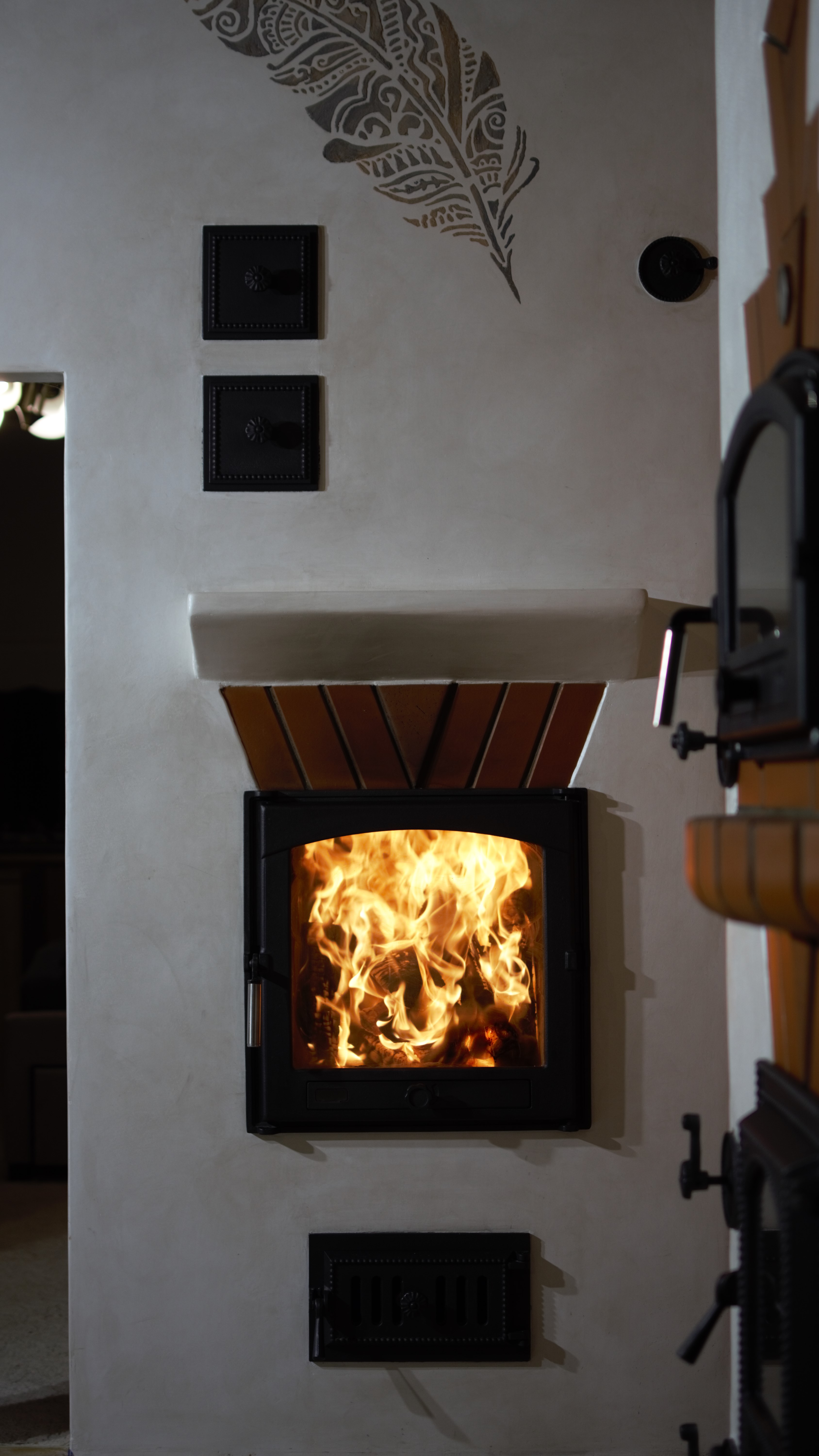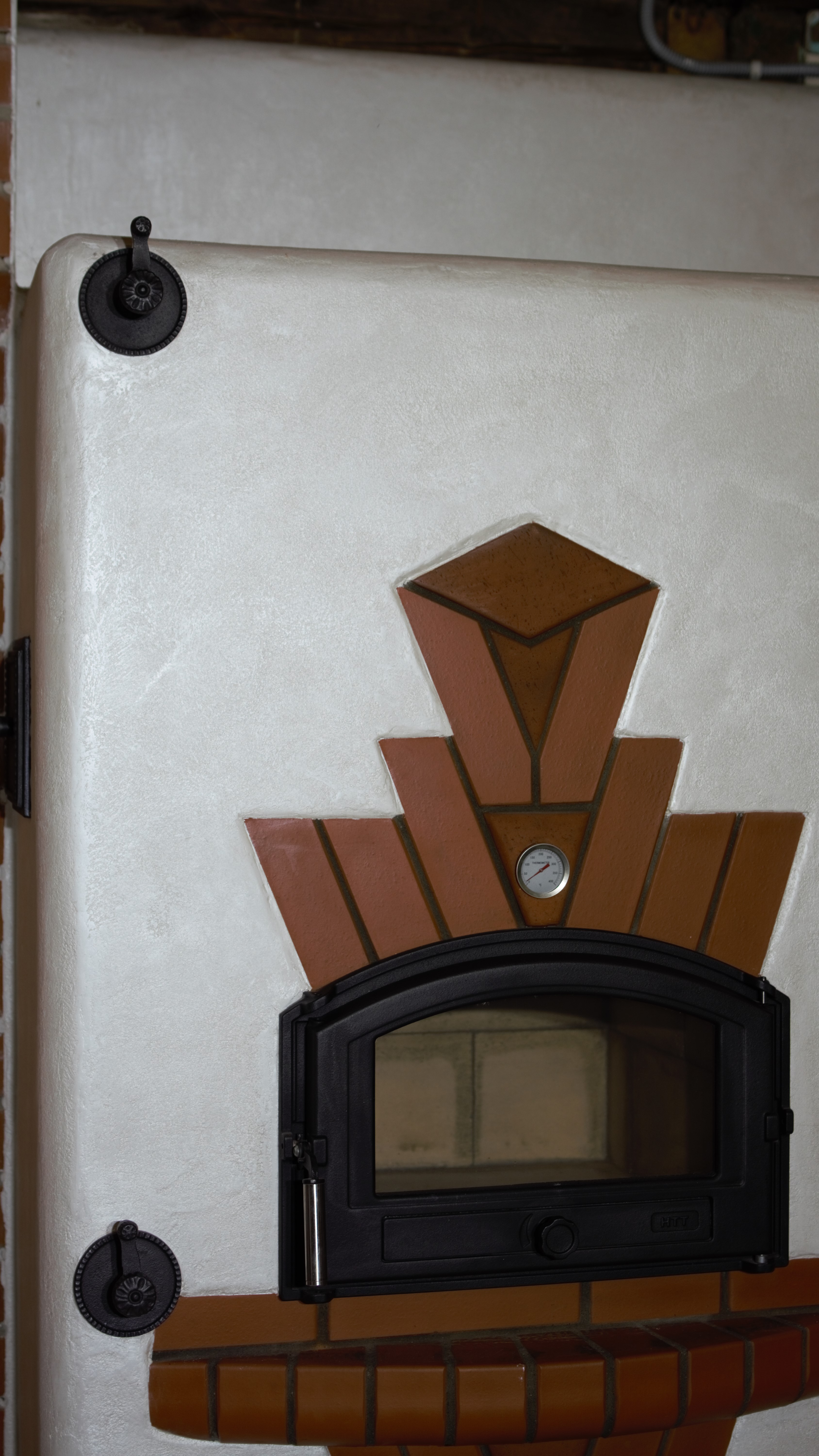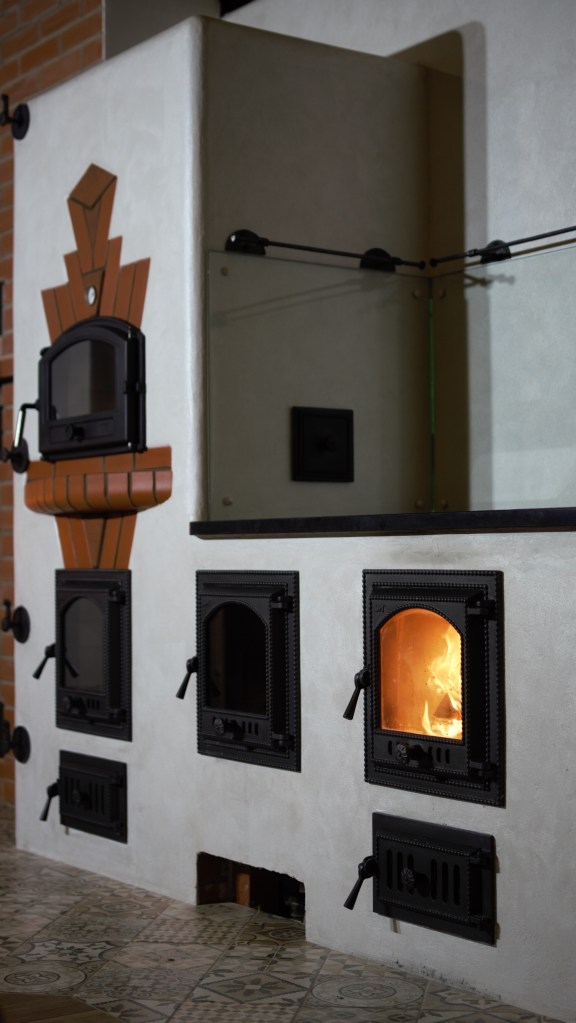 Tilsi-Tamme küttekompleks Pihlapuude väravalt viib looklev tee ilmapuu alla. Siin ilmapuu kaitsva võra varju alla on loonud veelinnurahvas oma koja ja just sellesse kotta viiski seekord meid meie tee. Aeg läheb uskumatult kiiresti ja nagu vahest ikka juhtub saame pildistama minna ikka tükk aega hiljem kui siseviimistlus on jõudnud järele. Nii ka seekord. Juba kolm aastat tagasi teostasime sellise küttekompleksi. Antud küttekompleks on lahendatud nii, et kogu kütmine toimub köögist ja kogu maja on soe. Tellija soov oli, et kui ta istub köögilaua taga oma kohal, näeb ka kõigis neljas koldes toimuvat ja kõigi kuue siibri asendit. Ja nii saigi tehtud! Küttekompleks koosneb suurest ahjust millel on poolkaares leso, eraldi leivaahjust ja pliidi kompleksist, koos soojamüüriga. Kõigest veidi lähemalt: Suure ahju tegime ikka mõnusalt suureks ja võimsaks maja südameks. Suur kolle mis lahendatud võlviga tagab ahjule pika salvestuskestvuse ja meeldiva toidutegemise võimaluse. Kliendi sõnul valmivad selle ahju koldes väga maitsvad söögid ja mis peamine, toit ei lähe kõrbema. Ahi on varustatud kahe siibriga. Ahju leso ja ahju ülemine osa on eraldi juhitavad ja kolde põlemisõhk tuleb koldesse ahju külgedelt.Selle ahju lesol kasutatakse pehmenduseks karunahka,põlislaane Vardja kasukat. Leivaahi: Leivaahju kamber on lahendatud puhta kambrina. Puhas kamber tähendab seda et sellest kambrist ei juhita läbi suitsu vaid suitsugaasid käivad über leivaahju kambri. Nii on leivaahju kamber puhas ja seda saab kasutada toidu tegemiseks kütmise ajal. Kliendi sõnul on leivaahi nende pere poolt pidevalt kasutuses ja selles pidid valmima väga maitsvad pirukad. Leivaahju kambrile paigaldasime ka termomeetri ja kambri lahendasime suure soojamahtuvusega šamott materjalist mis hoiab väga pikalt soojust ka siis kui koldes on tuli juba kustunud. Pliidi kompleks on lahendatud kahe koldena. Eraldi kolle vesipõranda küttele kuhu on paigaldatud pudel Sellisel viisil saab maja kütta ka elektrikatkestuse korral, sest juhul kui elekter on parasjagu ära saab kütta kõrvalolevat pliidi kollet ja pliidi kolle kütab soojaks soojamüüri. Pliidi plaat Nero Assoluto harjatud variant, paksus 30mm. Malmi asemel kasutasime keraamilise klaasi plaate mille lasime lõigata vastavalt soovitud mõõdule. Korstnapits: Korstnapitsi lähteülessanne stiili osas oli väga lihtne. Tee mul korstnapits mis küla teeks kadedaks just nõnda kõlas tellija soov. Ja selline ta siis lõpuks saigi. Lode Janka punane tellis ja tootja Meistri müürimört kombineerituna sellisesse stiili. Antud kompleksi teostamisel lõid käed külge A- Viimistluse OÜ, Anvar Valge. Kogu pinnaviimistlus kus kasutati mõnusa ja isikupärase efekti saamiseks lubi marmorino krohvi. Plaatimistööd teostas Plaat-Est OÜ, Anti Hüvenen Kulbivarnad meie koostööpartner sepp Kristjan Tuuleveski poolt