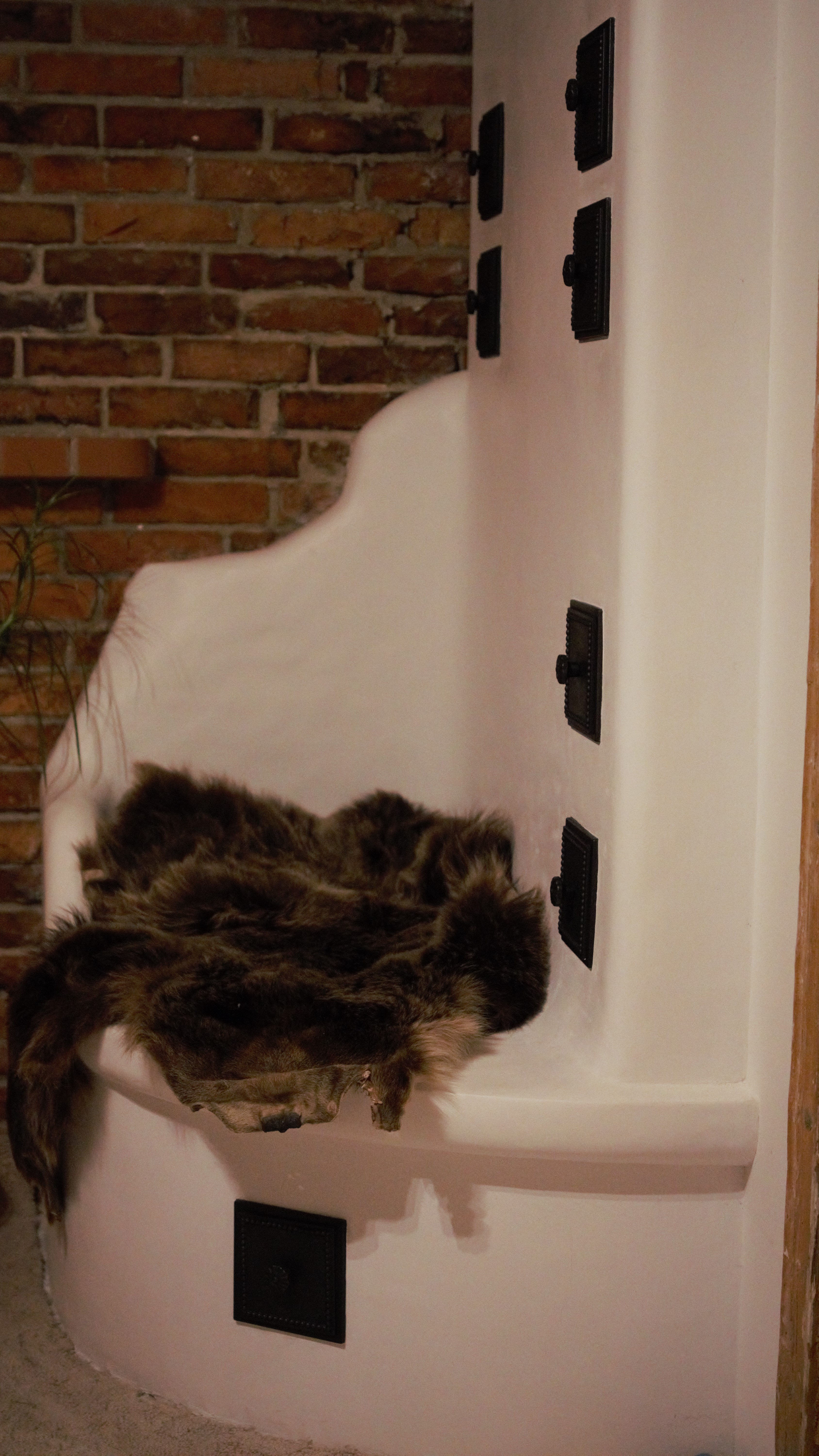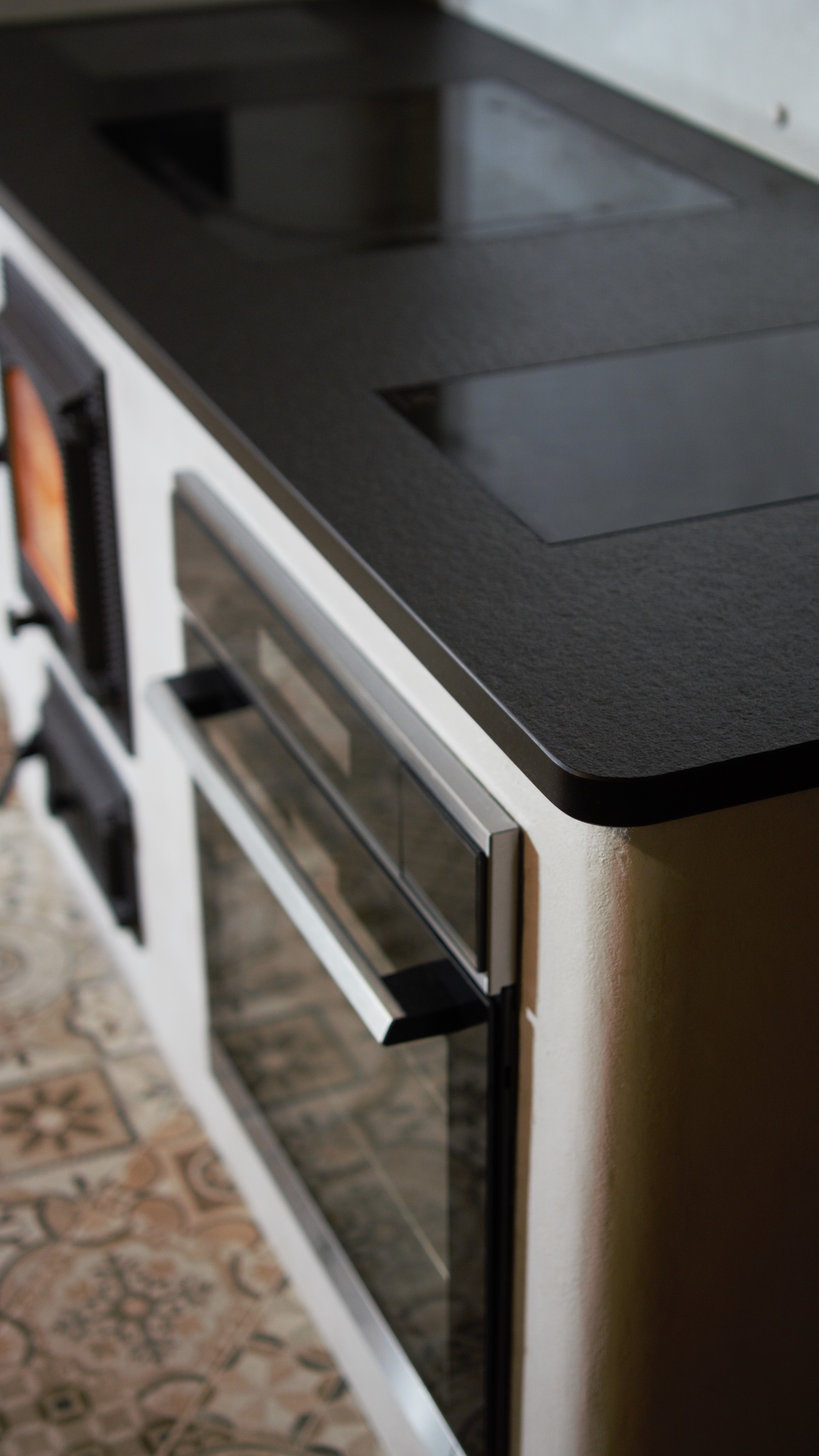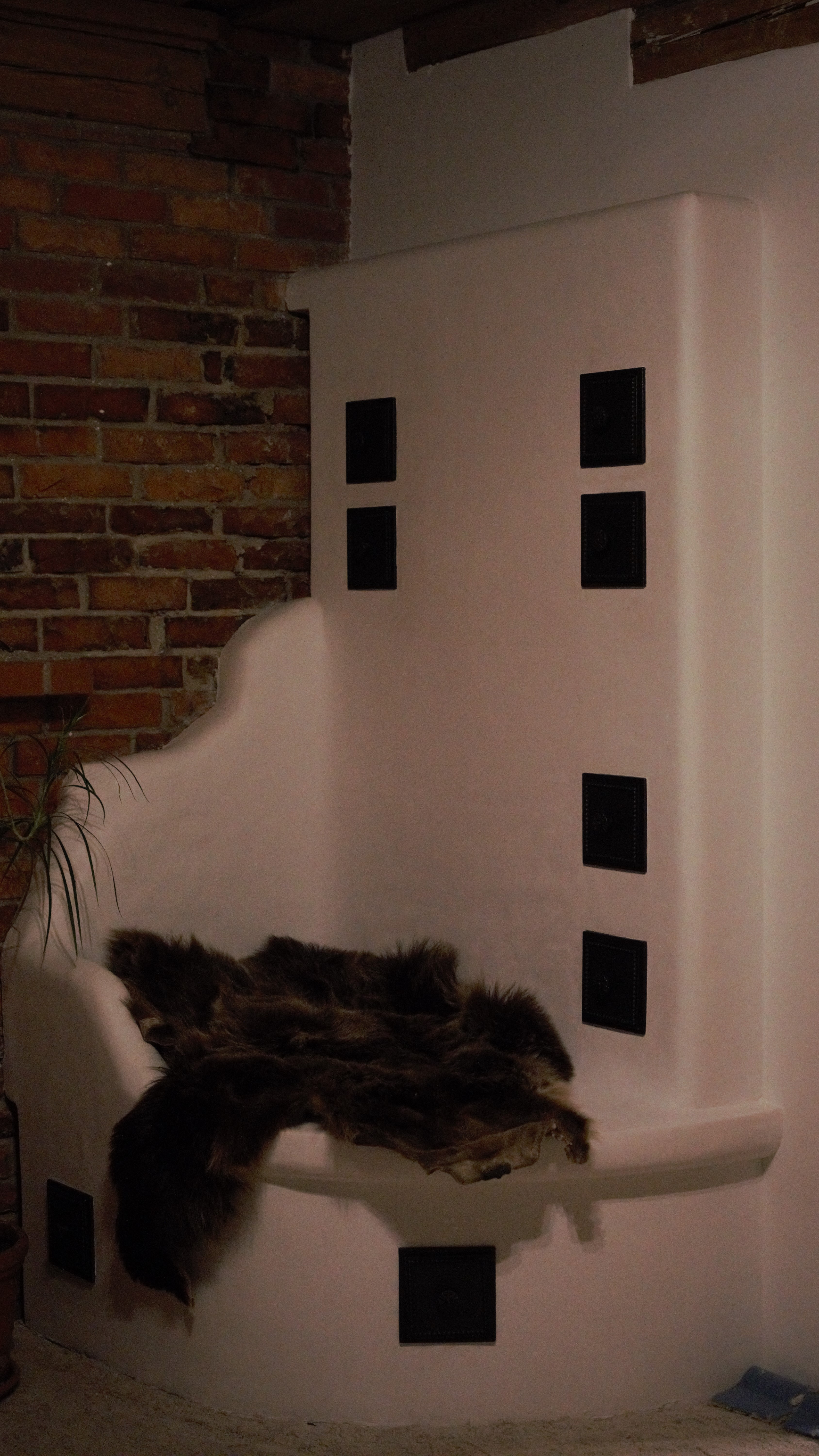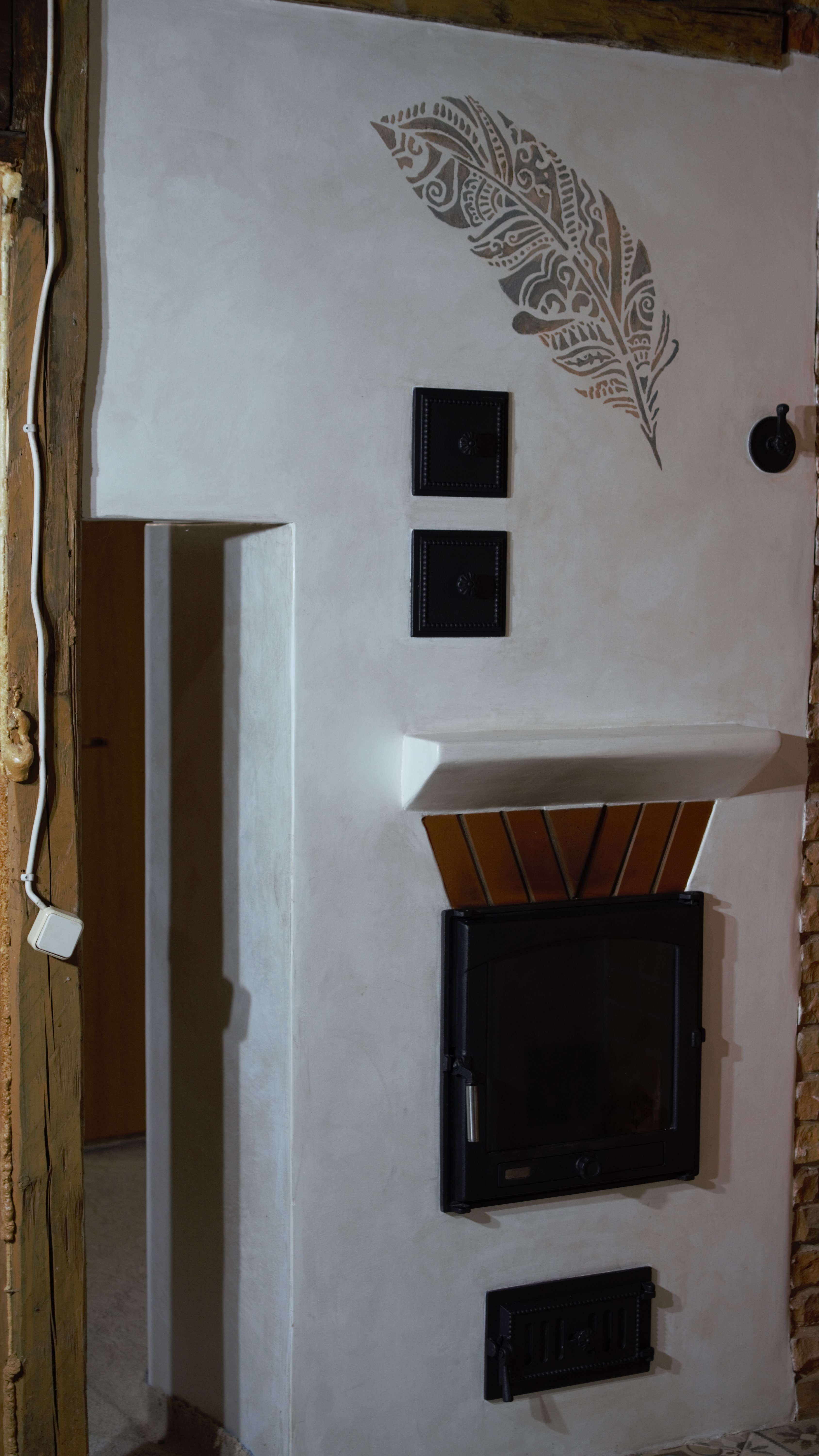 Tilsi-Tamme küttekompleks Pihlapuude väravalt viib looklev tee ilmapuu alla. Siin ilmapuu kaitsva võra varju alla on loonud veelinnurahvas oma koja ja just sellesse kotta viiski seekord meid meie tee. Aeg läheb uskumatult kiiresti ja nagu vahest ikka juhtub saame pildistama minna ikka tükk aega hiljem kui siseviimistlus on jõudnud järele. Nii ka seekord. Juba kolm aastat tagasi teostasime sellise küttekompleksi. Antud küttekompleks on lahendatud nii, et kogu kütmine toimub köögist ja kogu maja on soe. Tellija soov oli, et kui ta istub köögilaua taga oma kohal, näeb ka kõigis neljas koldes toimuvat ja kõigi kuue siibri asendit. Ja nii saigi tehtud! Küttekompleks koosneb suurest ahjust millel on poolkaares leso, eraldi leivaahjust ja pliidi kompleksist, koos soojamüüriga. Kõigest veidi lähemalt: Suure ahju tegime ikka mõnusalt suureks ja võimsaks maja südameks. Suur kolle mis lahendatud võlviga tagab ahjule pika salvestuskestvuse ja meeldiva toidutegemise võimaluse. Kliendi sõnul valmivad selle ahju koldes väga maitsvad söögid ja mis peamine, toit ei lähe kõrbema. Ahi on varustatud kahe siibriga. Ahju leso ja ahju ülemine osa on eraldi juhitavad ja kolde põlemisõhk tuleb koldesse ahju külgedelt.Selle ahju lesol kasutatakse pehmenduseks karunahka,põlislaane Vardja kasukat. Leivaahi: Leivaahju kamber on lahendatud puhta kambrina. Puhas kamber tähendab seda et sellest kambrist ei juhita läbi suitsu vaid suitsugaasid käivad über leivaahju kambri. Nii on leivaahju kamber puhas ja seda saab kasutada toidu tegemiseks kütmise ajal. Kliendi sõnul on leivaahi nende pere poolt pidevalt kasutuses ja selles pidid valmima väga maitsvad pirukad. Leivaahju kambrile paigaldasime ka termomeetri ja kambri lahendasime suure soojamahtuvusega šamott materjalist mis hoiab väga pikalt soojust ka siis kui koldes on tuli juba kustunud. Pliidi kompleks on lahendatud kahe koldena. Eraldi kolle vesipõranda küttele kuhu on paigaldatud pudel Sellisel viisil saab maja kütta ka elektrikatkestuse korral, sest juhul kui elekter on parasjagu ära saab kütta kõrvalolevat pliidi kollet ja pliidi kolle kütab soojaks soojamüüri. Pliidi plaat Nero Assoluto harjatud variant, paksus 30mm. Malmi asemel kasutasime keraamilise klaasi plaate mille lasime lõigata vastavalt soovitud mõõdule. Korstnapits: Korstnapitsi lähteülessanne stiili osas oli väga lihtne. Tee mul korstnapits mis küla teeks kadedaks just nõnda kõlas tellija soov. Ja selline ta siis lõpuks saigi. Lode Janka punane tellis ja tootja Meistri müürimört kombineerituna sellisesse stiili. Antud kompleksi teostamisel lõid käed külge A- Viimistluse OÜ, Anvar Valge. Kogu pinnaviimistlus kus kasutati mõnusa ja isikupärase efekti saamiseks lubi marmorino krohvi. Plaatimistööd teostas Plaat-Est OÜ, Anti Hüvenen Kulbivarnad meie koostööpartner sepp Kristjan Tuuleveski poolt