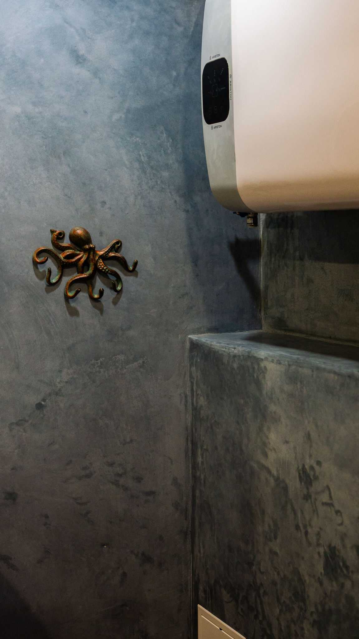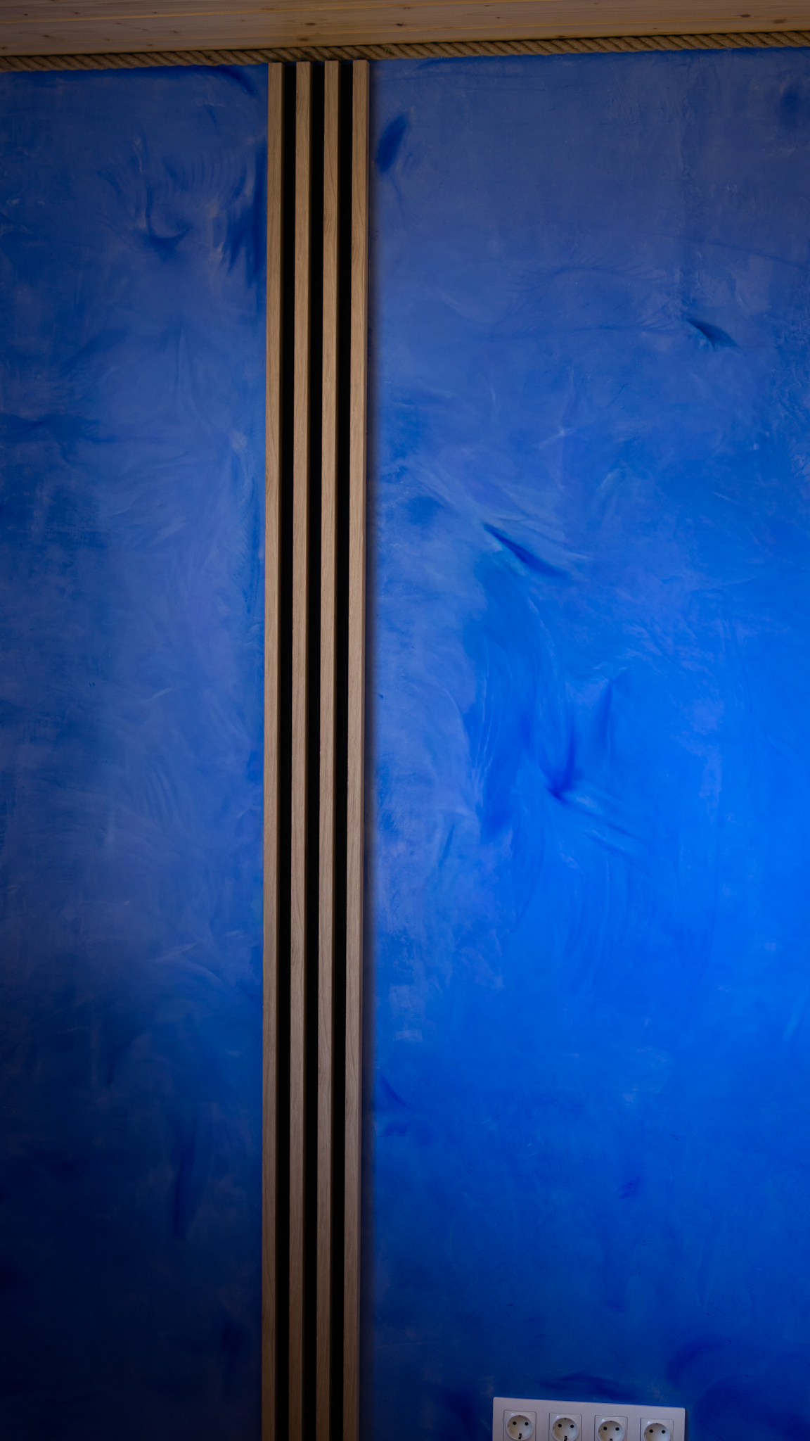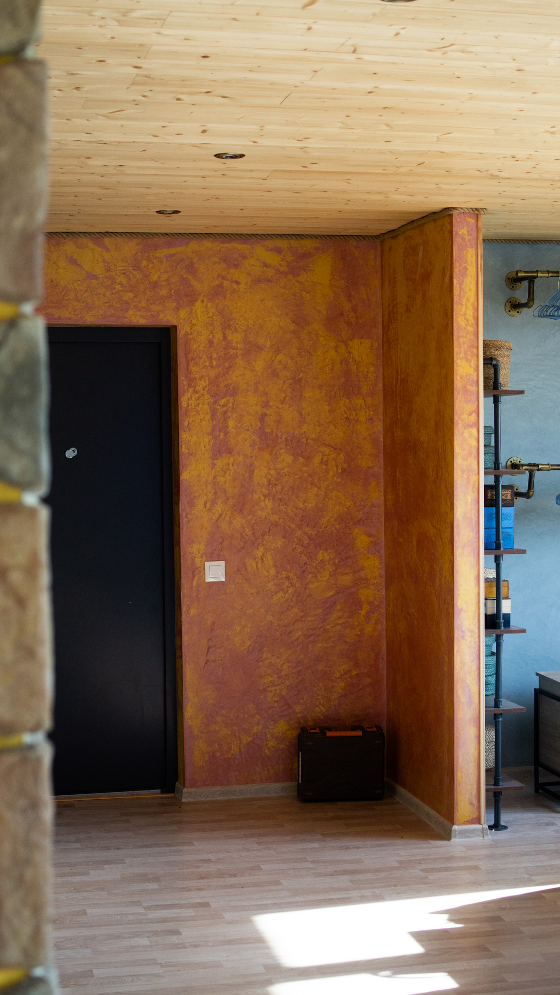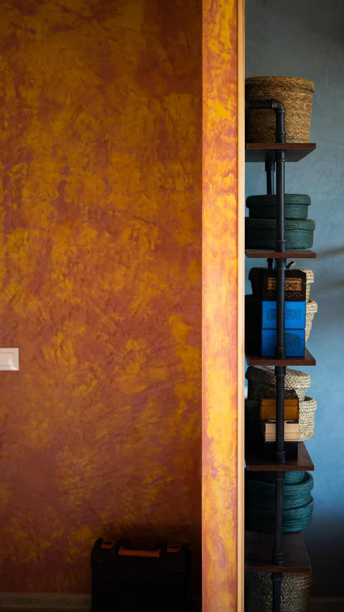Selles korteris võtsime ette tõelise materjalide rännaku. Kasutasime teadlikult erinevatel seintel erinevaid tehnikaid ja toone, et luua kihiline ja isikupärane interjöör. Meie “tööriistakastis” olid seekord: